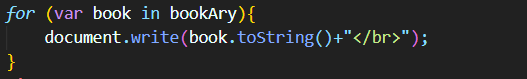 나는 book이 bookAry에 있는 객체 하나를 갖고 와서, 거기에 toString 함수를 호출해주는 줄 알았는데, 알고보니 book은 인덱스 값을 갖는 것이었다. 원리는 아래와 같다.