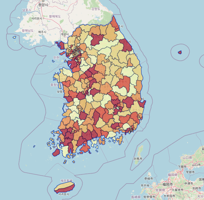 코드는 분명 맞게 쳤다고 생각하는데..그래서 범례도 잘 뜨는데 막상 지도 위에는 아무것도 그려지지 않는 문제가 발생했다. 처음에는 geojson의 문제인가 싶었는데 json 문서를 보니 그건 아닌 것 같았고 가맹점 수 범례도 내가 갖고 있는 데이터에 맞게 잘 표시된 걸 봤을때 그 문제도 아니었다.