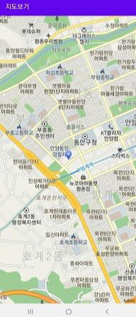 이 버스 앱의 기능 중에 "지도보기"라는 기능이 있는데, 이 기능은 사용자가 검색한 정류장이 어디에 있는지 그 위치를 지도에 마커로 표시하여 나타내주는 것이다.